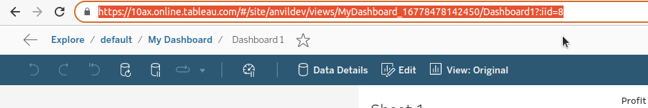 To do this, you’ll need your dashboard’s published URL. To do this, open the dashboard in Tableau Cloud or Server, and click Publish: