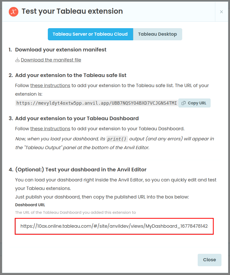 Paste it into the Anvil “Test in Tableau” dialog: