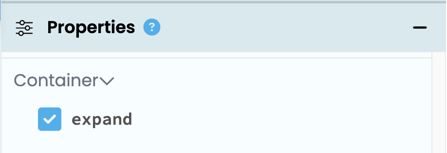 Container Properties are properties that control the relationship between a component and the container it is in; the argument names and their meanings are specific to the type of container. They are visible in the Properties panel in the Anvil Editor.